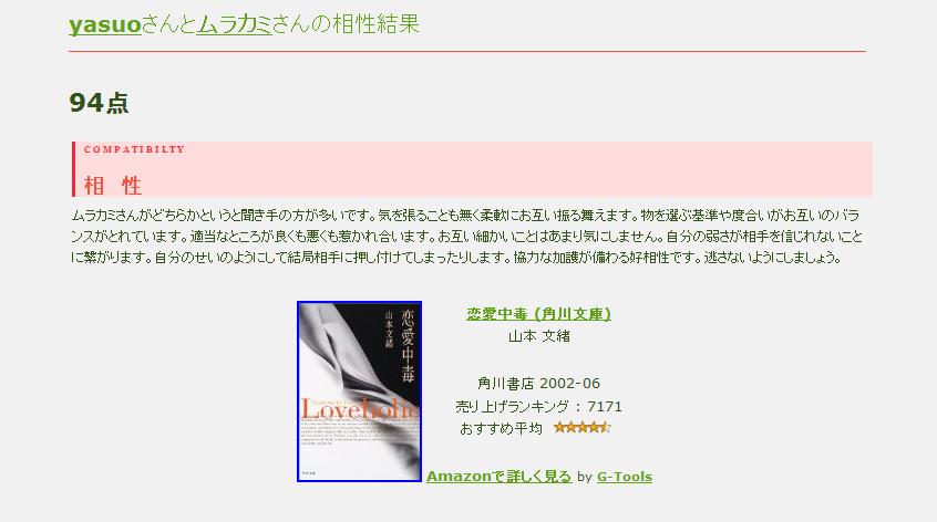 この画像は、ゲノムの相性診断で、友達と私の相性を