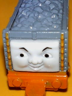 置いた覚えのない不気味な笑みをした機関車トーマス系のオモチャが…。